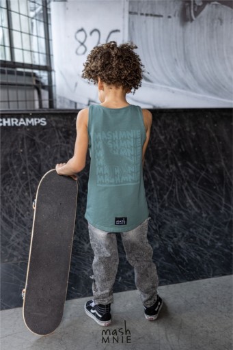 Zielony topik, bezrękawnik dla chłopca. Bawełna bardzo miła w noszeniu a przede wszystkim przewiewna. Tył troszeczkę dłuższy, zaokrąglony z firmową naszywką. Topik posiada delikatny, bardzo subtelny nadruk na plecach oraz mniejszy z przody. Polski ceniony producent.