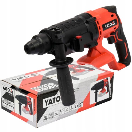 Młotowiertarka Yato YT-82772 z serii GRE to narzędzie o zróżnicowanych funkcjach: wiercenie, wiercenie z udarem i podkuwanie. Posiada obroty regulowane w zakresie 0-1000 min?¹ oraz napięcie zasilania wynoszące 18 V d.c. Narzędzie jest wyposażone w uchwyt narzędziowy SDS-Plus oraz przełącznik kierunku obrotów.