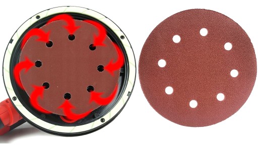 Krążek posiada 8 otworów służących do odsysania pyłów powstających przy czyszczeniu i wyrównywaniu powierzchni gipsowych lub innych.