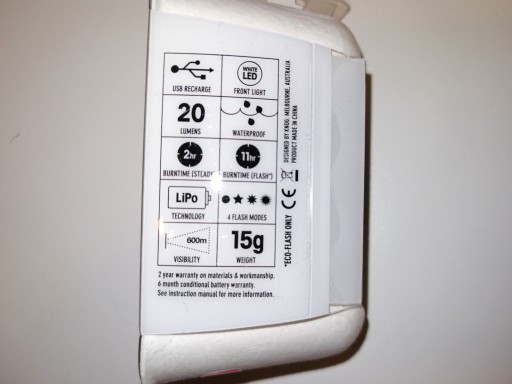 - Czas pracy: 2 h w trybie światła stałego lub 11 h w trybie migającym
