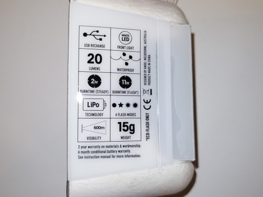 - Czas pracy: 2 h w trybie światła stałego lub 11 h w trybie migającym