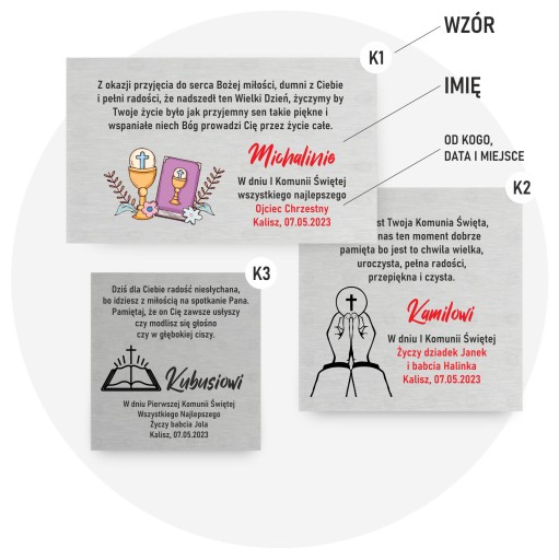 Spersonalizuj go podając nam dane do grawera zaznaczone we wzornikach na czerwono.