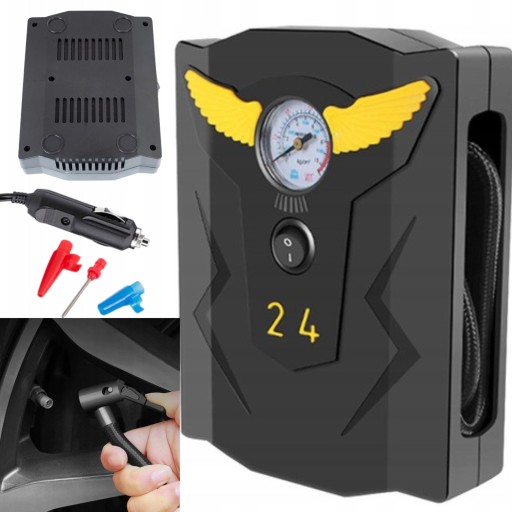 Zasilany z gniazda zapalniczki. Doskonale nadaje się do pompowania wszelkiego rodzaju przedmiotów tj. koła samochodowe, rowerowe, piłki materace, itp.
