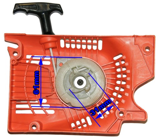Kompletny szarpak z linką, ślimakiem , który pasuje do większości standardowych modeli pił spalinowych dostępnych na polskim rynku.
