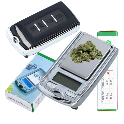 Bardzo oryginalna i dyskretna waga jubilerska w kształcie pilota do samochodu.