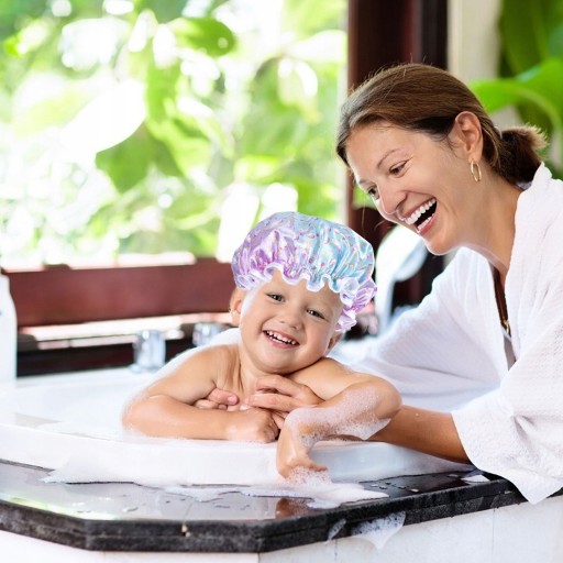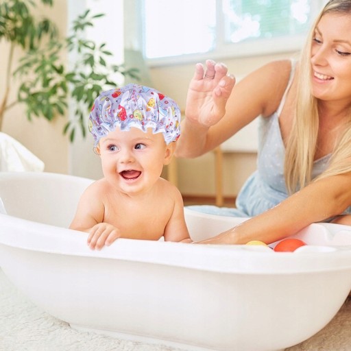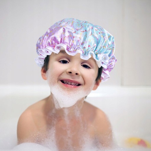 stylowy prysznic Hat z luźnymi paskami, które rozciągają się do większości dzieci, idealny dla dużych Loki, plecionki, plecionki, naturalne włosy, loki i długie włosy