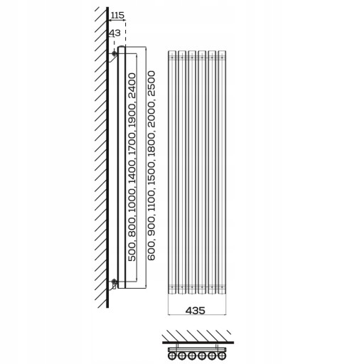 W tym przypadku należy pamiętać, że nie ma możliwości wykonania grzejnika z zasilaniem dolnym centralnym o rozstawie 50 mm z racji przegrody, która uniemożliwi obieg wody w grzejniku. Kolektor pod grzałkę powinien być po przeciwnej stronie niż zasilanie.