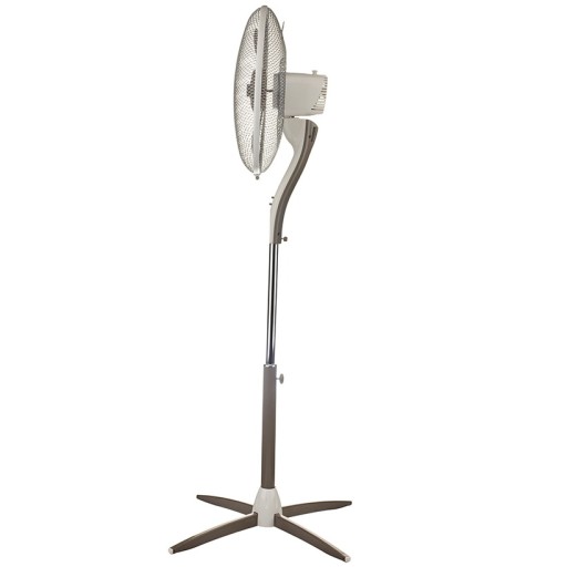 Wentylator ten posiada podstawowe funkcje jakimi są oscylacja oraz regulowany kąt nachylenia. Urządzenie możemy ustawić w zakresie 3 prędkości, a to co je wyróżnia to duża moc aż 55 W. Specjalny wirnik z 5 łopatkami zapewnia cichą i wydajną pracę, a przy tym wiatrak zaprojektowano tak, by był bezpieczny w użytkowaniu. Sterowany przy pomocy kilku przycisków w obudowie.