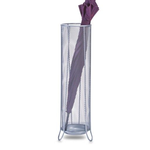 Praktyczny stojak do przechowywania parasoli. Sprawdzi się w każdym domu, biurze, poczekalni lub szatni. Wykonany z metalowej siatki. Atrakcyjny design. Stabilna i wytrzymała konstrukcja. Wyposażony w nóżki oraz pełne dno ułatwiające zbieranie ściekającej wody.