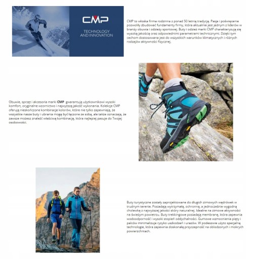 - Technologie: Clima Protect®, CMP Full On Grip, EVA, Waterproof, OrthoLite®
