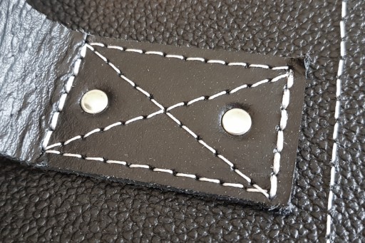 Torba jest szyta mocną nicią poliamidową i nitowana w miejscach wymagających dużej wytrzymałości.