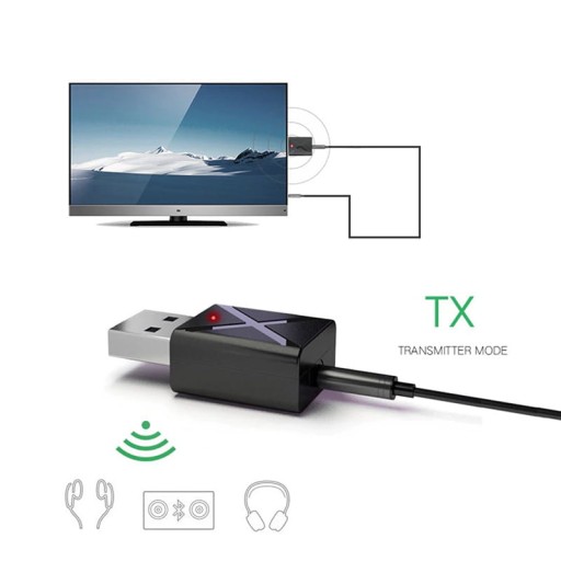 Ten niewielkich rozmiarów transmiter wyposażony jest Bluetooth 5.0 oraz złącza AUX(wejście wyjście). Urządzenie pozwala na transmisje dźwięku pomiędzy urządzeniami poprzez sygnał Bluetooth oraz kabel JACK 3,5mm. Transmiter posiada dwa tryby pracy RX\TX.