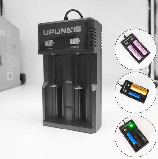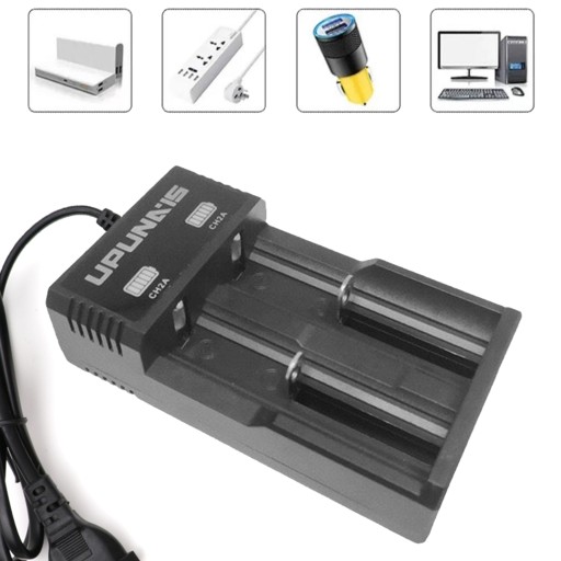 Nasza ładowarka ładuje 1-2 ogniwa Li-ion 3,6 / 3,7V o dowolnej pojemności w rozmiarach 10440, 14500, 14650, 16340, 17500, 17670, 18350, 18500, 18650, 18700, 20700, 2170, 22650, 25500, 26650.
