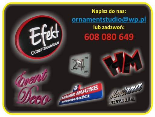 - litery ze styroduru z licem z pleksi;