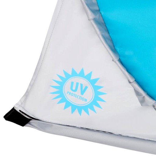 To samorozkładający się namiot plażowy. Jego wymiary, gwarantują wygodę i komfort użytkowania. Główną zaletą, modelu NC3173 jest to, że sam się rozkłada. Wystarczy wyjąć go z pokrowca i położyć na ziemi. W przeciągu paru sekund namiot jest gotowy. Co za tym idzie w ekspresowym tempie, możemy oddać się błogiemu odpoczynkowi. Dzięki dołączonym do zestawu śledziom, produkt nie będzie się przemieszczał, nie zajdzie także ryzyko porwania przez wiatr. Dodatkowo, namiot posiada specjalne kieszenie, które można napełnić piaskiem. One również mają za zadanie, zapobiegać niepożądanemu przemieszczaniu się namiotu.