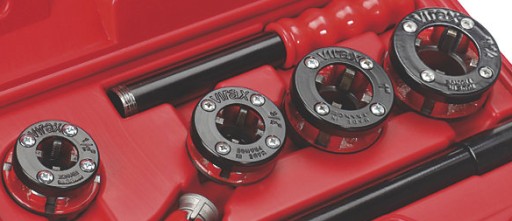 - głowice gwintujące z długim prowadzeniem rury (równy gwint)