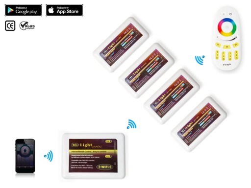 Aby sterować oświetleniem za pomącą smartfonu należny dokupić sterownik WIFI-4S.