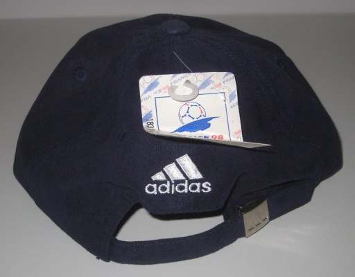 Pamiątkowa czapka z daszkiem Adidas - France '98. Rozmiar: One Size. Kolor: ciemnoniebieski. Nowa. Stan jak na zdjęciach. Z Francji. Cena za 1 szt.