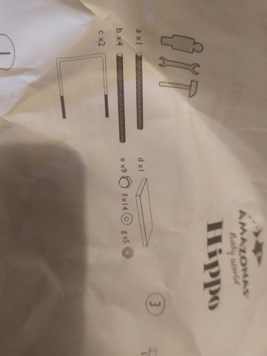 Produkt nowy, ze zwrotu, brak deseczki przez którą należy wbijać dołączone śruby (element oznaczony na instrukcji jako d). Opakowanie podniszczone