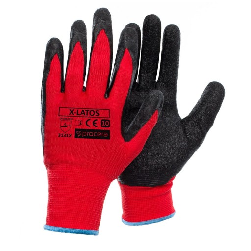 Rękawice X-LATOS wykonane z czerwonego poliestru, powlekane w części chwytnej lateksem o szorstkowanej strukturze. Idealne do prac manualnych. Bardzo dobra chwytność. Dobrze dopasowują się do kształtu dłoni. Rozciągliwe i elastyczne. Zakończone ściągaczem.