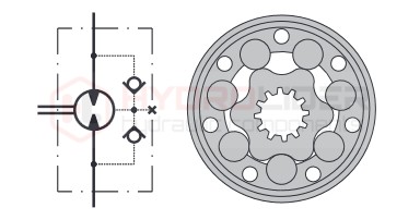- Dwa zawory odciążająco-zwrotne - zabezpieczają silnik w obu kierunkach obrotu, znacznie wydłużają żywotność, wspierają i poprawiają skuteczność uszczelnień na wałku, zabezpieczają silnik przy pracy w niekorzystnych warunkach.