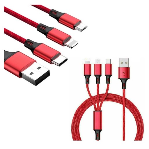 Poznaj wielofunkcyjny kabel do ładowania oraz transmisji danych USB aż z trzema wtyczkami.