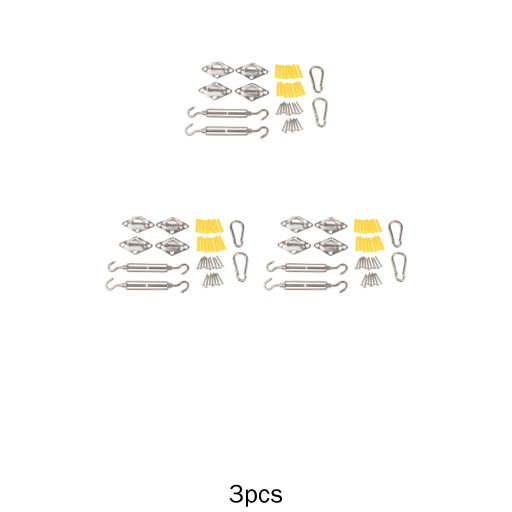 Wysokiej jakości zestaw osprzętu ze stali nierdzewnej do montażu czterostronnych żagli przeciwsłonecznych.