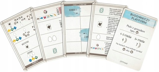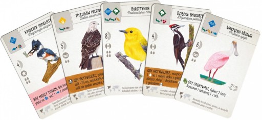 - Złożyć jaja, tzn. pobrać jedno z zasobów i umieścić na karcie odpowiedniego ptaka.