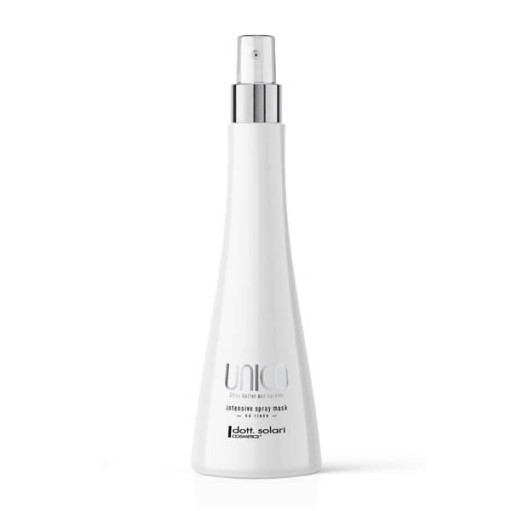 Intensywna maska UNICO w sprayu bez spłukiwania o natychmiastowym działaniu do wszystkich rodzajów włosów. Zawiera płynną keratynę, kawior oraz masło Shea.