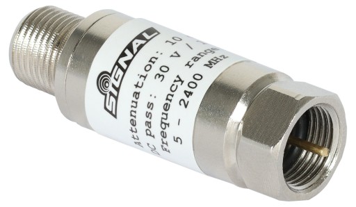 Tłumik przeznaczony do zmniejszania poziomu sygnału w instalacji CATV w paśmie 5-2400 MHz. Zalecany do instalacji multiswitchowych jak i mierników, w których zbyt wysoki poziom sygnału na wejściu powoduje przesterowanie urządzenia. Tłumik charakteryzuje się wysoką stabilnością tłumienia.