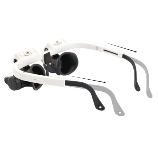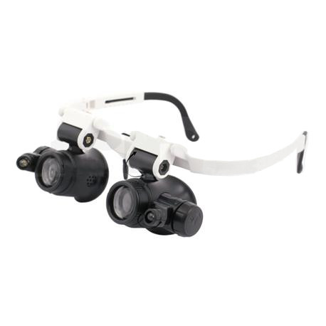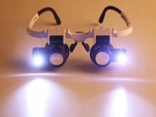Profesjonalne okulary z wygodnym noskiem i regulowanymi oprawkami o wysokim współczynniku powiększania z wbudowanym podświetleniem LED.