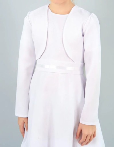 Bolerko w kolorze białym. Uszyte z satyny ślubnej, na podszewce.