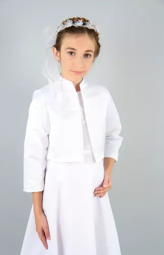 Bolerko w kolorze białym Uszyte z satyny ślubnej, na podszewce.