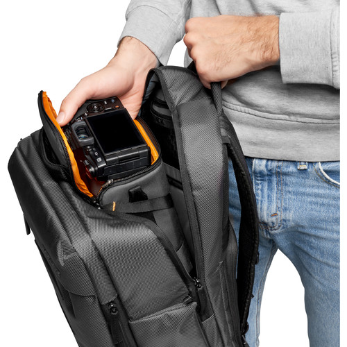 Dzięki inteligentnemu i elastycznemu designowi możesz dostosować układ wewnętrznych przegródek, aby zabezpieczyć Twój aparat bezlusterkowy i dodatkowe obiektywy. W wewnętrznej kieszeni zmieści się dodatkowa karta pamięci, a w zewnętrznej — przewody, zaślepka obiektywu i akcesoria.