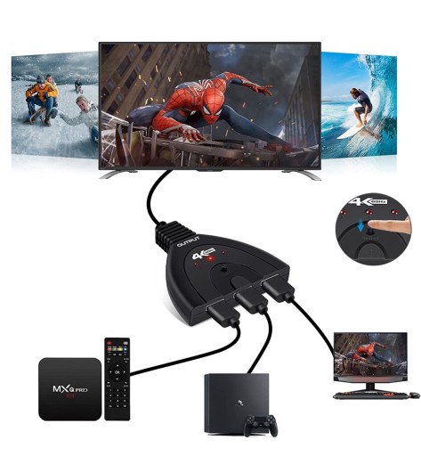 Разветвитель-переключатель HDMI 3x1, 3 порта, 4K-сплиттер