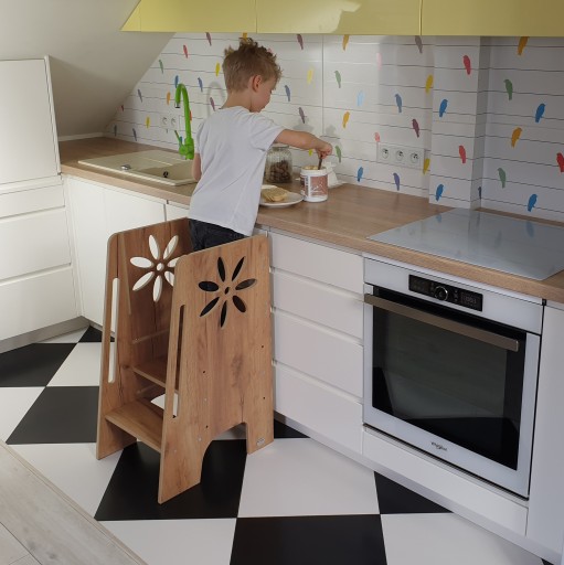 Nasz kitchen helper to solidny produkt, który jest w całości produkowany w Polsce. Zbudowaliśmy go z laminowanych płyt MDF, dzięki czemu jest stabilny i bezpieczny. Całość została ręcznie wykończona, aby żadna ostra krawędź lub wystająca drzazga nie zagrażały maluchowi.