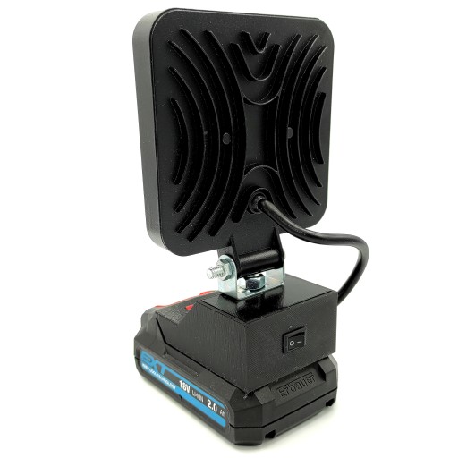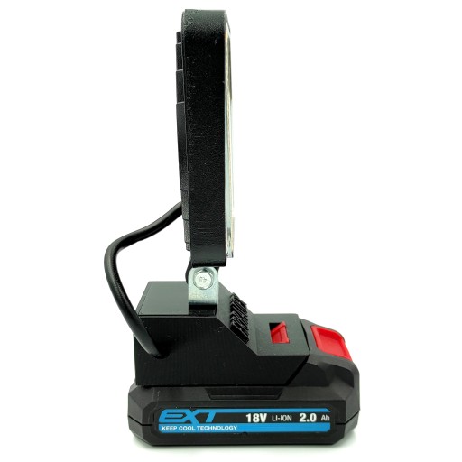 Po włożeniu do akumulatora mamy pełnowartościowy halogen roboczy, który sprawdzi się w nie jednym miejscu. Lampa posiada włącznik, który umożliwia włączanie i wyłączanie bez konieczności odpinania baterii.