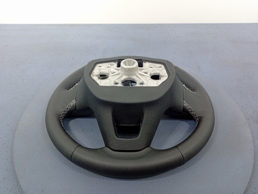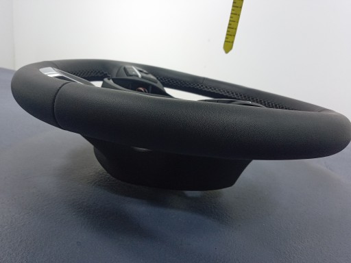 Opis: kierownica trójramienna, skórzana, z multifunkcją, podgrzewana, uszkodzenia widoczne na zdjęciach, wieniec wygięty wskutek wypadku, do naprawy bez możliwości zwrotu, -jakość C && FORD PUMA II MK2 KIEROWNICA SKÓRA MULTIFUNKCJA