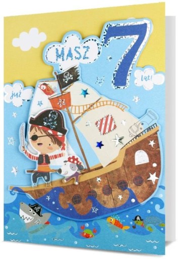 Kartka na 7 urodziny dla Chłopca pirata hura H2855