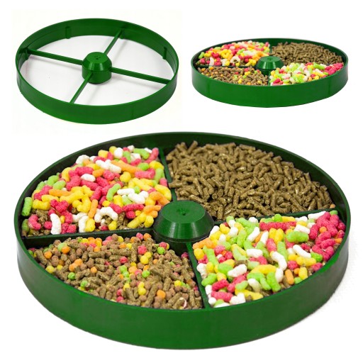 Karmnik swobodnie unosi się na wodzie i utrzymuje pokarm w jednym miejscu. W prosty sposób można przymocować go do brzegu lub zakotwiczyć na dowolnym gruncie.