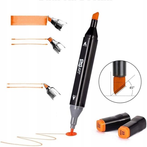 Markery posiadają dwustronne końcówki. Grubość końcówek: 3-6 mm, 1-2 mm.