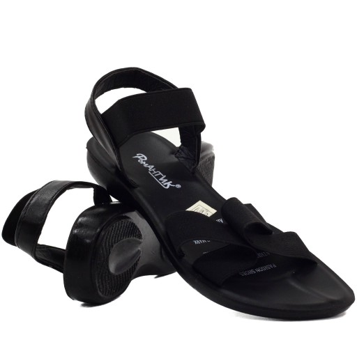 Damskie sandałki w kolorze czarnym na płaskiej podeszwie. Idealnie sprawdzą się jako obuwie na co dzień w letnie, upalne dni. Prosty fason dopasuje się również do eleganckich stylizacji. Elastyczny pasek przy kostce ułatwia zakładanie obuwia i ułatwia jego dopasowanie do stopy.