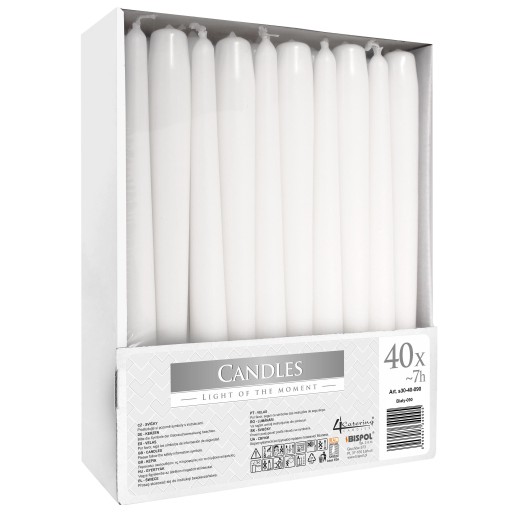 Свечи BISPOL Taper, белые, СТОЛ, 7 часов, свадебные, 40 шт