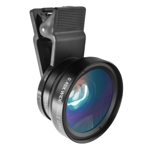 Obiektyw szerokokątny pozwala uchwycić w kadrze większy obszar otoczenia. To rozwiązanie sprawdzi się doskonale w fotografii architektury, wnętrz oraz krajobrazów. Warto wiedzieć, że obiektyw wkręcamy na obiektyw makro, a następnie montujemy w klipsie.