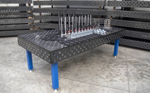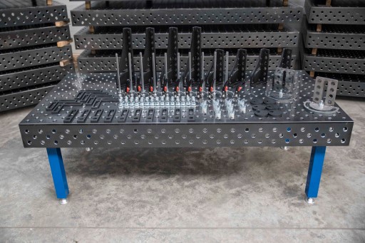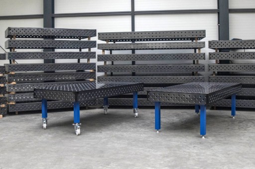 Stoły z systemem otworów 28 w siatce 100mm i dodatkowo grawerowaną podziałką również w siatce 100mm, to najbardziej popularne połączenie systemu mocowania narzędzi i punktów odniesienia do montażu konstrukcji.