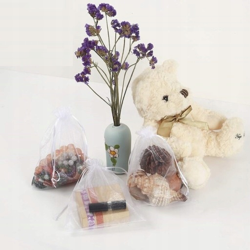 - Wykonany z dobrej jakości, przezroczystego materiału organzy, Rozmiar idealny na upominki, gadżety, wesela, prezenty, rękodzieło, biżuterię, przyjęcia, możesz umieścić pachnący wosk, kosmetyki w fiolkach, czekoladę i cukierki jako prezent. Możesz również użyć tych woreczków na prezenty z organzy do eleganckiego pakowania przedmiotów, takich jak upominki ślubne, mydła, płatki róż, świece, koraliki i inne.