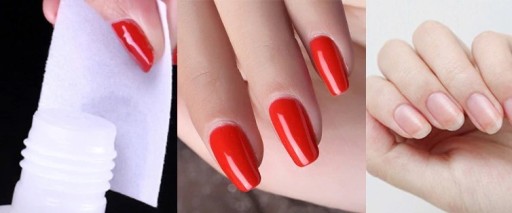 1) Zwilż wacik acetonem, przyłóż do płytki paznokcia, odczekaj 30 s (lub dłużej w zależności od jakości użytych hybryd).
