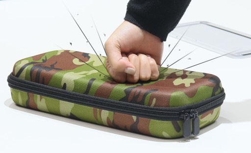 Futerał z zewnątrz pokryty został specjalnym, sztywnym materiałem, dzięki czemu doskonale chroni umieszczone wewnątrz akcesoria nawet w najtrudniejszych warunkach.