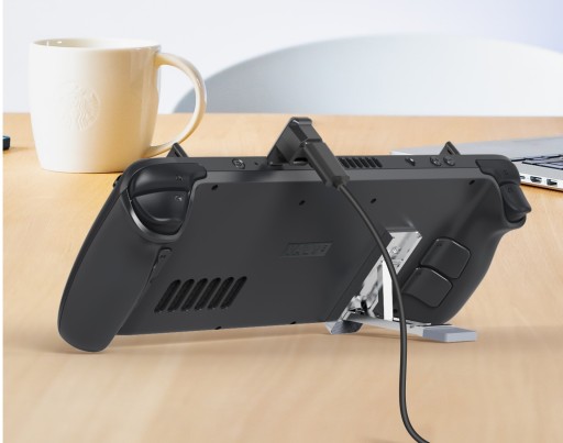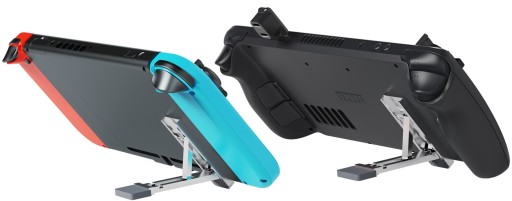 Zadaniem podstawki jest umożliwienie stabilnego ustawienia konsoli na wybranej powierzchni, takiej jak stół, biurko, szafka, półka itp. Nóżka jest składana, wykonana z aluminium. Może posłużyć także jako stabilna podpórka do telefonu.