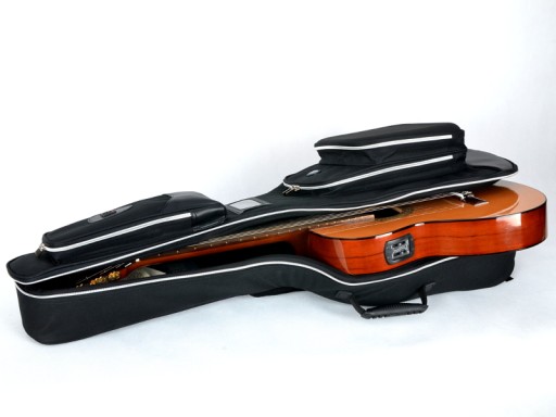 Wykonany z tkaniny kaletniczej usztywnionej pianką polietylenową grubości 25 mm. Posiada trzy pojemne kieszenie na nuty i akcesoria. Pokrowiec gitarowy wyposażony jest w regulowane szelki do noszenia na plecach. Wnętrze wyścielone jest dzianiną welurową.
